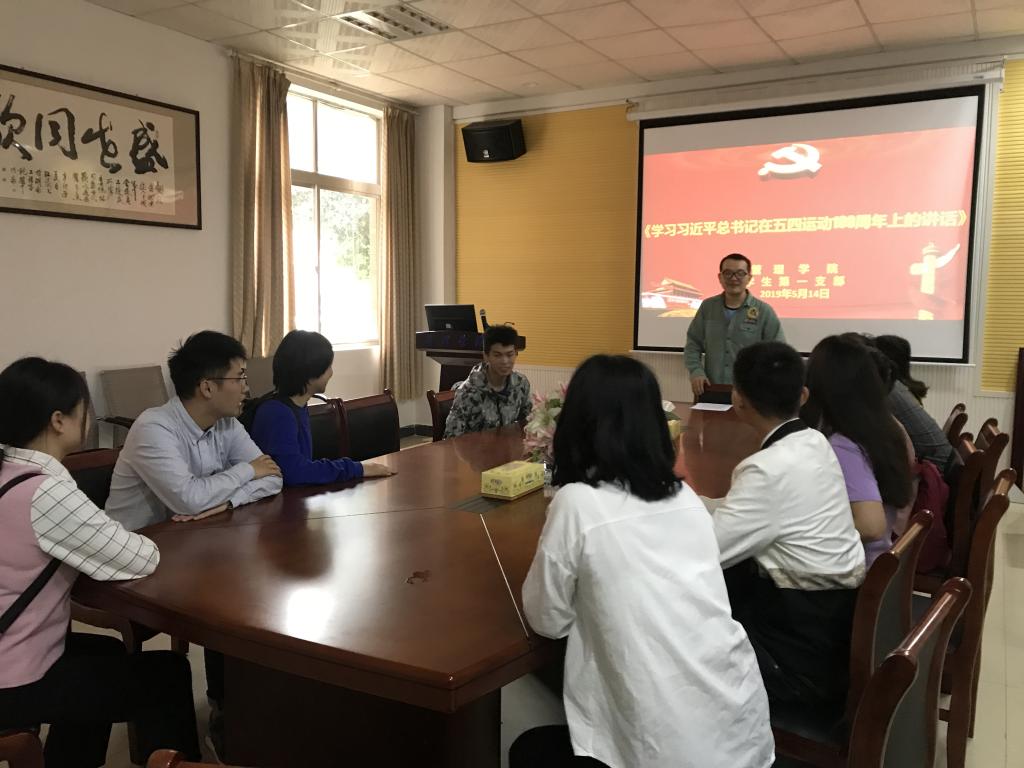 100年前,中国大地爆发了震惊中外的五四运动,这是中国近现代史上具有划时代意义的一个重大事件。今年是五四运动100周年,也是中华人民共和国成立70周年。在五四运动100周年之际,管理学院第一支部于2019年5月15日下午16点在F104召开学习习近平总书记在纪念五四运动100周年大会上的讲话支部大会,深入学习习近平总书记在纪念五匹四运动100周年大会上的重要讲话精神。