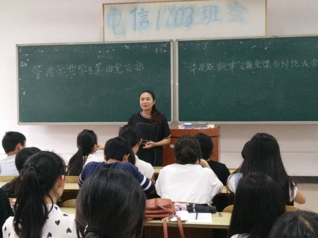 6月14日下午5:30管理学院学生第四党支部在C103召开了“讲规矩、有纪律”专题讨论会。各位学生党员以及预备党员均对“讲规矩、有纪律”发表了自己的看法以及态度。