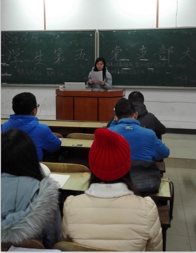 12月8日下午我院学生第五党支部2015年下支部大会伴随着国际歌于教学楼C403召开,党支部书记宋志航老师出席了会议。与会人员还包括第五党支部的正式党员,预备党员,发展对象,培养对象与积极分子代表。