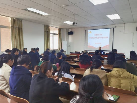 2021年11月23日下午,管理学院党委组织学院全体党员在G505认真学习十九届六中全会精神。会议由院党委副书记谭超同志主持。
