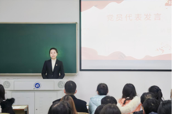 学生第四党支部书记代表陈景楠以“练就好‘脚力’,走好奋进路”为主题发言,勉励青年党员一要“不畏浮云遮望眼”,保持正确方向;二要“乱云飞渡仍从容”,坚定前进步伐;三要“翰墨丹青写春秋”,锻造高强本领。作为青年党员要保持初生牛犊不怕虎、越是艰险越向前的刚健勇毅,勇立时代潮头,争做时代先锋。