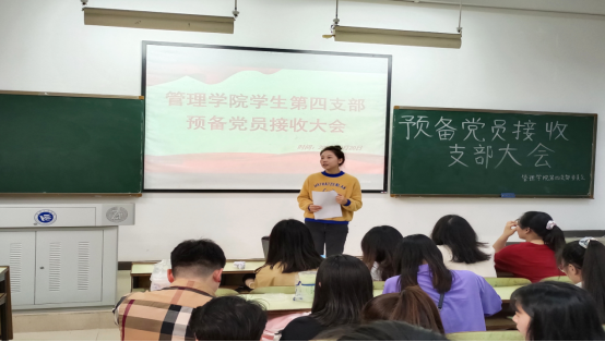 为壮大支部党员队伍,增强党支部力量,太阳成管理学院学生第四支部于2022年5月20日在B106召开接收预备党员的支部大会。参会人员包括全体正式党员和预备党员,此次会议由支部书记陈景楠主持。