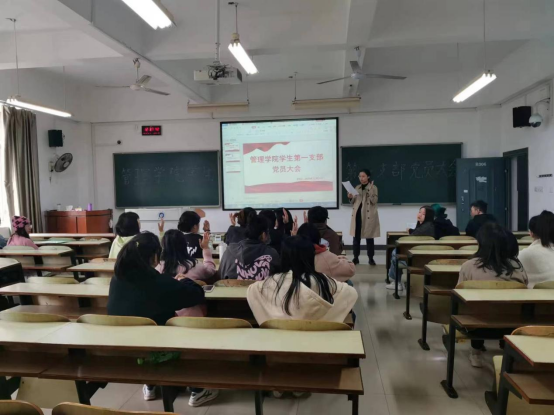 管理学院学生党支部第一支部于11月15日中午12点30分在新校区B306召开党员大会进行支部委员会换届。本次党员大会由支部书记李林老师主持,应到会党员22名,其中有选举权党员12名,实到会党员22名,符合规定人数。本次党员大会主要是听取和审查上届委员会工作报告和进行支部委员会换届。