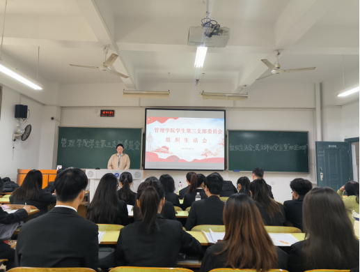 为深入学习贯彻党的二十大精神,严格执行党的组织生活制度,增强党员的组织、纪律观念,提升党支部凝聚力和战斗力。按照学校和学院党委的统一安排,2023年3月7日中午,管理学院学生第三支部委员会在B座202召开2022年度组织生活会暨民主评议党员大会。会议由支部书记陈祎婷主持,支部36名党员参加会议,管理学院党委委员单艳艳出席指导会议。