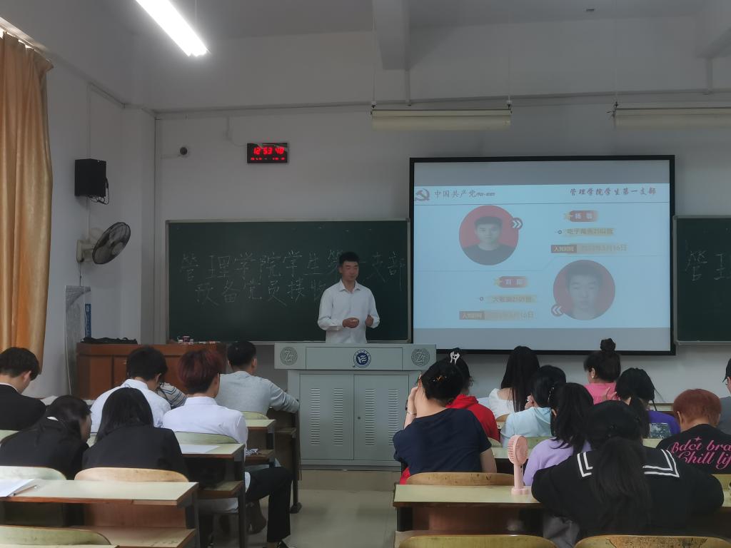 2023年5月16日,管理学院学生第一党支部在教学楼C104召开了支部大会,会议主要讨论是否接收周钰红等11名同志为中共预备党员的相关事宜,会议由支部书记李林主持,支部全体正式党员、预备党员及拟接收预备党员共39人参与了本次会议。