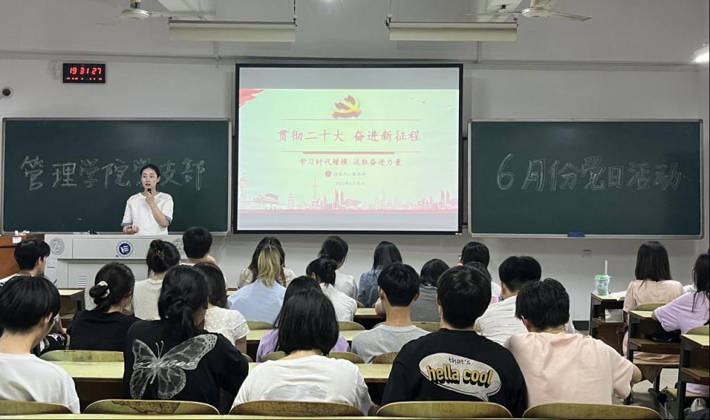 为贯彻落实党的二十大精神,引导学生支部党员增强党性观念,感受榜样精神的时代内涵。2023年6月25日晚,管理学院学生党支部在B301联合开展“学习时代楷模,汲取奋进力量”主题党日活动。本次活动由支部书记陈祎婷主持,学生党支部全体党员参加。
