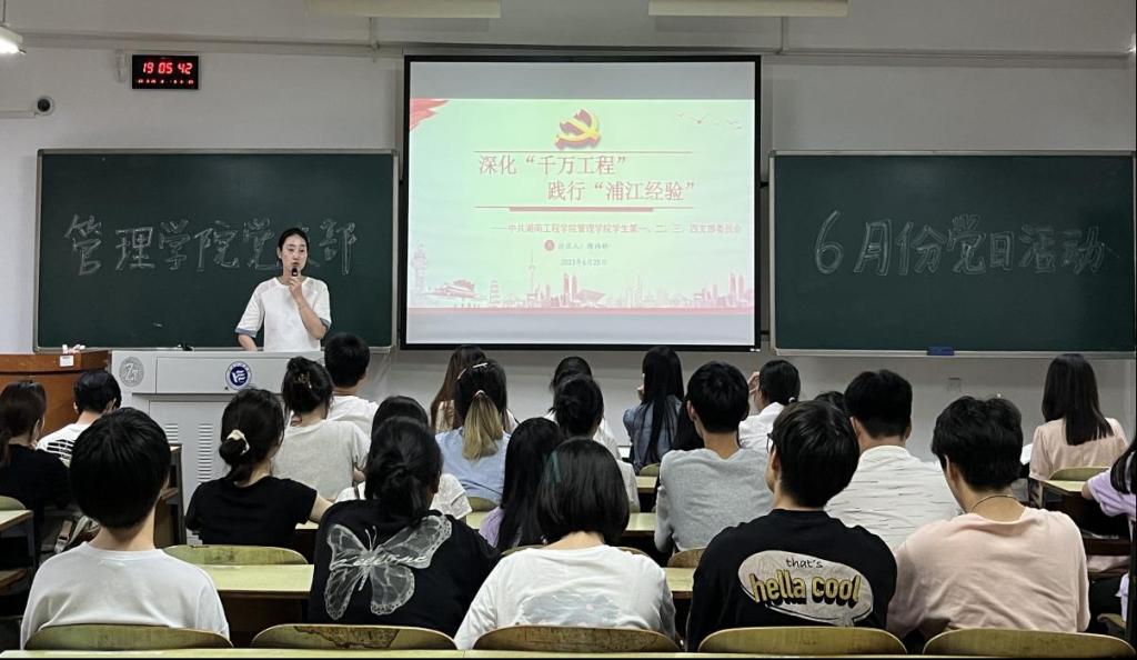 今年是“八八战略”实施20周年,也是“千万工程”实施20周年和“浦江经验”提出20周年。2023年6月25日,管理学院全体学生党员在教学楼B栋301开展深化“千万工程”践行“浦江经验”主题党课。本次活动由学生第三支部支部书记陈祎婷主持,学生支部全体党员参加。