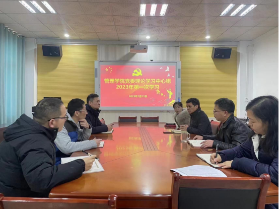 1月11日,管理学院党委理论学习中心组在F104会议室开展2023年第一次集中学习。学院党委书记余博主持学习,学院全体党委委员参加学习。