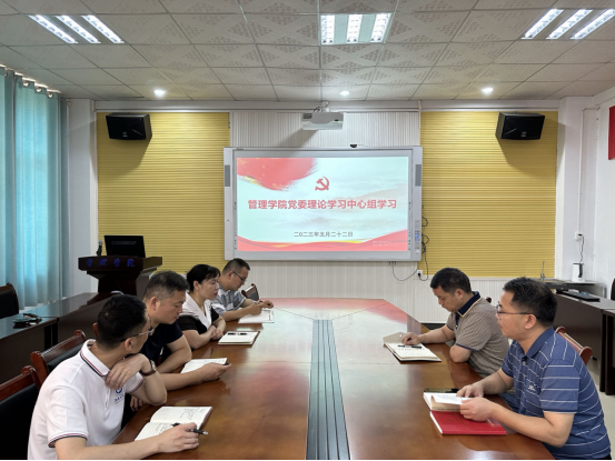 5月22日,管理学院党委理论学习中心组在F104会议室开展2023年第五次集中学习。学院党委书记余博主持学习,学院全体党委委员参加学习。