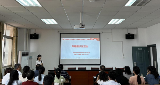 会上,刘喜梅首先对支部在6-8月份开展的学习贯彻习近平新时代中国特色社会主义思想主题教育工作成果从做实理论学习、推进组织育人新模式、深化调查研究、全心全意为师生办好事办实事、形成学习贯彻党的创新理论的制度机制等五个方面进行全面总结。她指出,支部开展主题教育以来,开展了6期微党课讲授、开展了5次党建带团建、志愿服务活动、形成了一份“师生心愿清单”,开展结对帮扶与“我为师生办好事办实事”故事分享,有效推进党员积分制考核管理制度,向学习强国、红网、新湖南等省级媒体推送主题教育成果报道19篇,有力宣传了支部工作,有效发挥了基层党组织的凝聚力与战斗力,产生了广泛的社会影响。