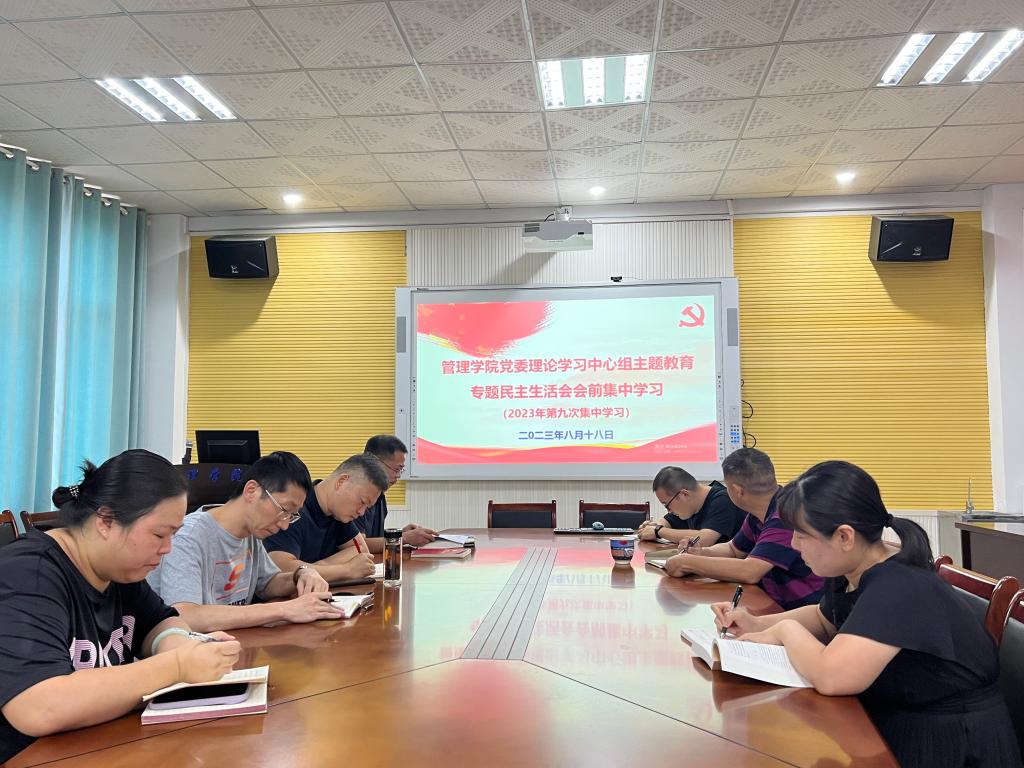 8月18日,管理学院党委理论学习中心组在F104会议室开展2023年第九次集中学习(主题教育专题民主生活会会前集中学习)。学院党委书记余博主持学习,学院全体党委委员参加学习。