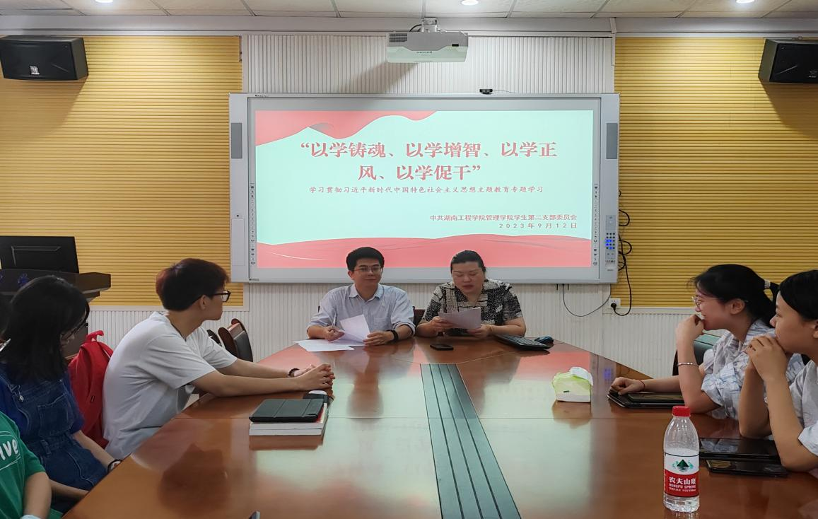 为深入学习贯彻习近平新时代中国特色社会主义思想,提升党组织政治功能和组织力。2023年9月5日,管理学院学生第二党支部在新校区F104召开学习贯彻习近平新时代中国特色社会主义思想主题教育专题组织生活会。会议由党支部书记罗蒙老师主持,管理学院党委委员谭超到会指导会议,管理学院学生第二党支部全体党员参加。