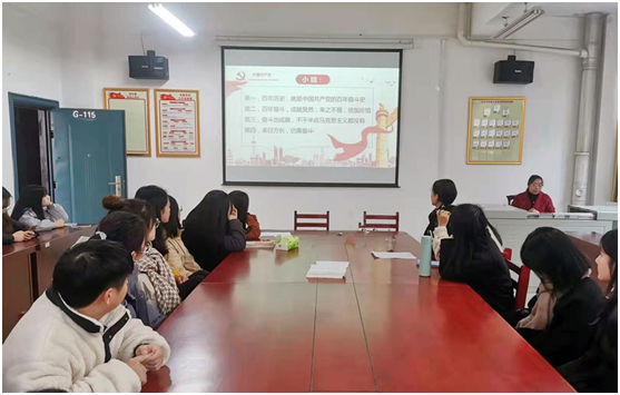 为引导广大学生党员对党史中奋斗谱系的认识和理解,12月21日下午13点,经济学院在主教学楼G-113开展“百年党史中的奋斗谱系”专题党课学习。学生党支部书记李军花讲授党课。全体学生党员参加了党课学习。