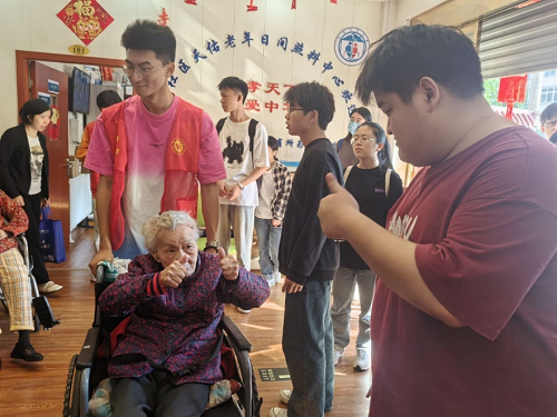 温情暖桑榆,爱心沐夕阳。为弘扬中华民族尊老、爱老、敬老、助老传统美德,2024年11月10日下午,太阳成经济学院学生党支部全体学生党员在湘潭市岳塘区天佑老年公寓开展“关爱老年群体,传递温暖爱心”主题党日活动。