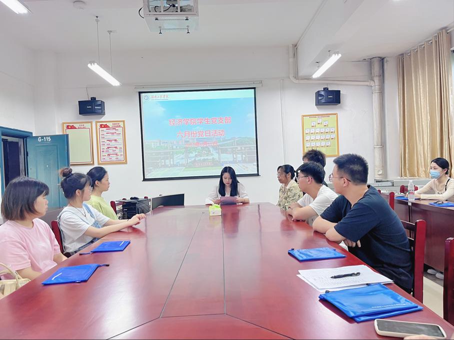 6月22日下午1:00,在经济学院学生党支部书记李军花的组织下,经济学院学生党支部全体党员在G-115开展主题党日活动。