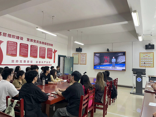 2024年4月22日下午,经济学院学生党支部书记李军花组织学生党员在教学楼G-115观看《传承红色保密基因》系列纪录片。
