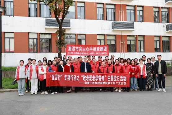 3月22 日,为弘扬社会主义核心价值观,提升社会对盲人按摩行业和残疾人群体的认知与尊重,促进政策落实与社会和谐,全国党建工作样板支部、全国高校“双带头人”教师党支部书记“强国行”专项行动团队——ok138cn太阳集团529教工第二党支部携手ok138cn太阳集团团总支、湘潭市盲人按摩行业协会在湘潭市湘雅夕乐苑天伦养护院开展了一次以“残健同跑迎朝阳,心手相牵暖人心”为主题的公益活动,湘雅夕乐苑天伦养护院主管尹小林、湘潭市盲人按摩行业协会会长黄继时、湘潭市福利院原院长袁琪等人参加了此次活动。活动现场,视障跑者与志愿者们手牵着手、心连着心,携手并肩奔跑在 3.6公里的跑道上。在奔跑过程中,为更好地配合视障跑者的节奏,大学生志愿者们别出心裁,以尤克里里的优美旋律替代传统路标,为视障跑者精准指引方向。在默契配合下,他们整齐的步伐声响彻跑道,共同冲向终点。