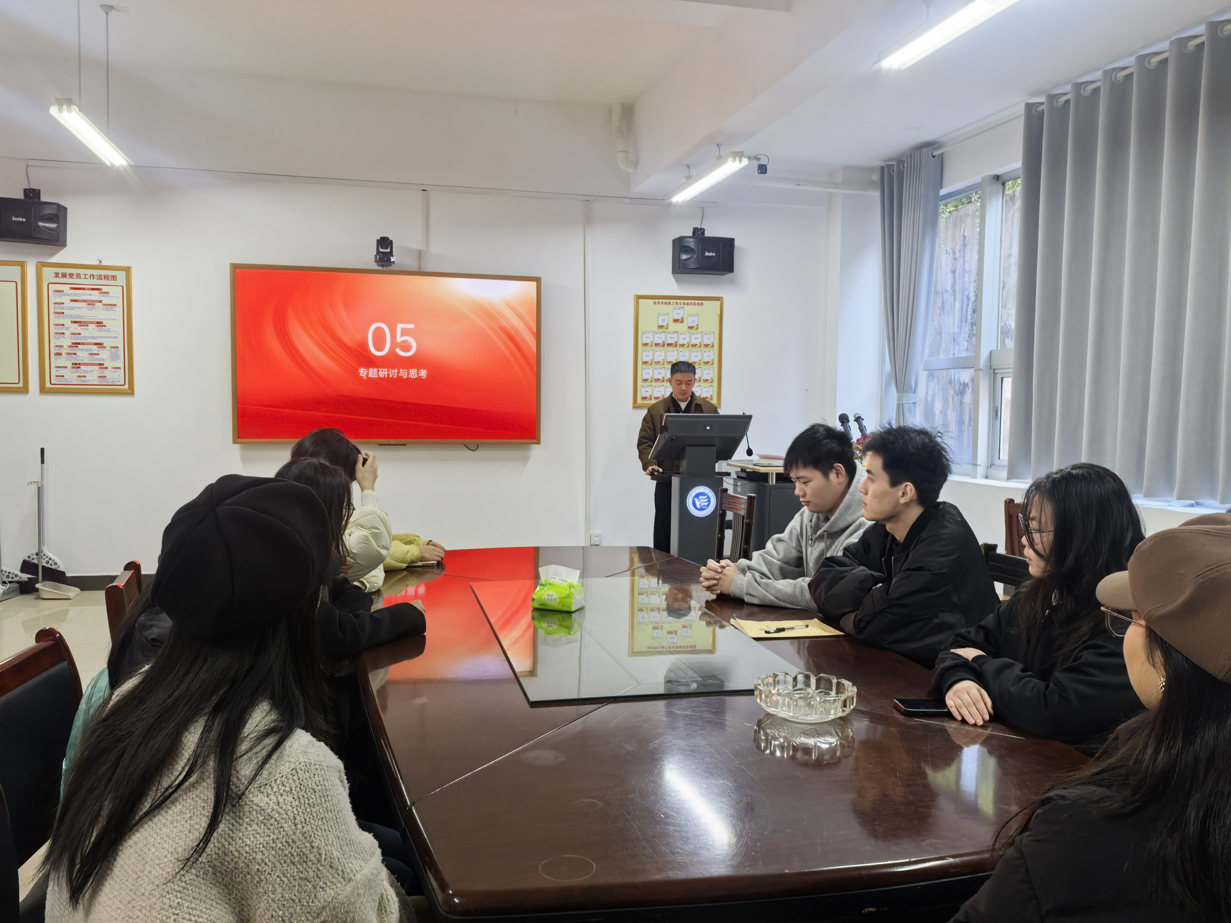 为深入学习贯彻党的二十届四中全会精神,扎实推进理论武装走深走实, 11月19日,ok138cn太阳集团学生第四党支部于G-115会议室开展“深学全会精神,续写奋进新篇”专题学习研讨活动,支部全体党员参会学习。