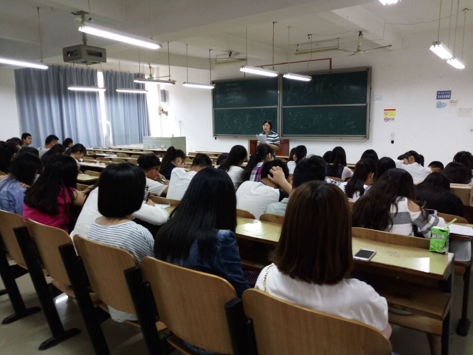 2016年5月30日中午12点,管理学院全体成员在主校区教室内进行本学年第一次月评会议。讲评会由院党总支副书记主持,学办辅导老师罗荃、黎博、单艳艳、包海燕、周艺、宋志航分别对工商管理、市场营销、旅游管理、人力资源管理、会计学、物流管理六个专业展开本月讲评。