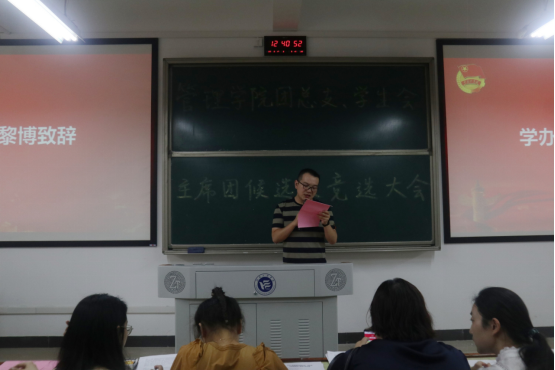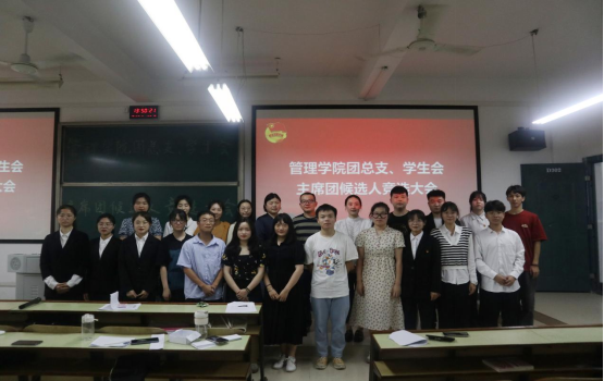 6月17日中午,管理学院新一届团总支、学生会主席团换届大会在主教学楼D502举行。管理学院学办主任黎博、全体学办辅导员、2021-2022学年管理学院学生联合组织全体学生干部,以及各党支部正式党员、预备党员参与本次大会。大会由工商管理2102班刘彦成主持。