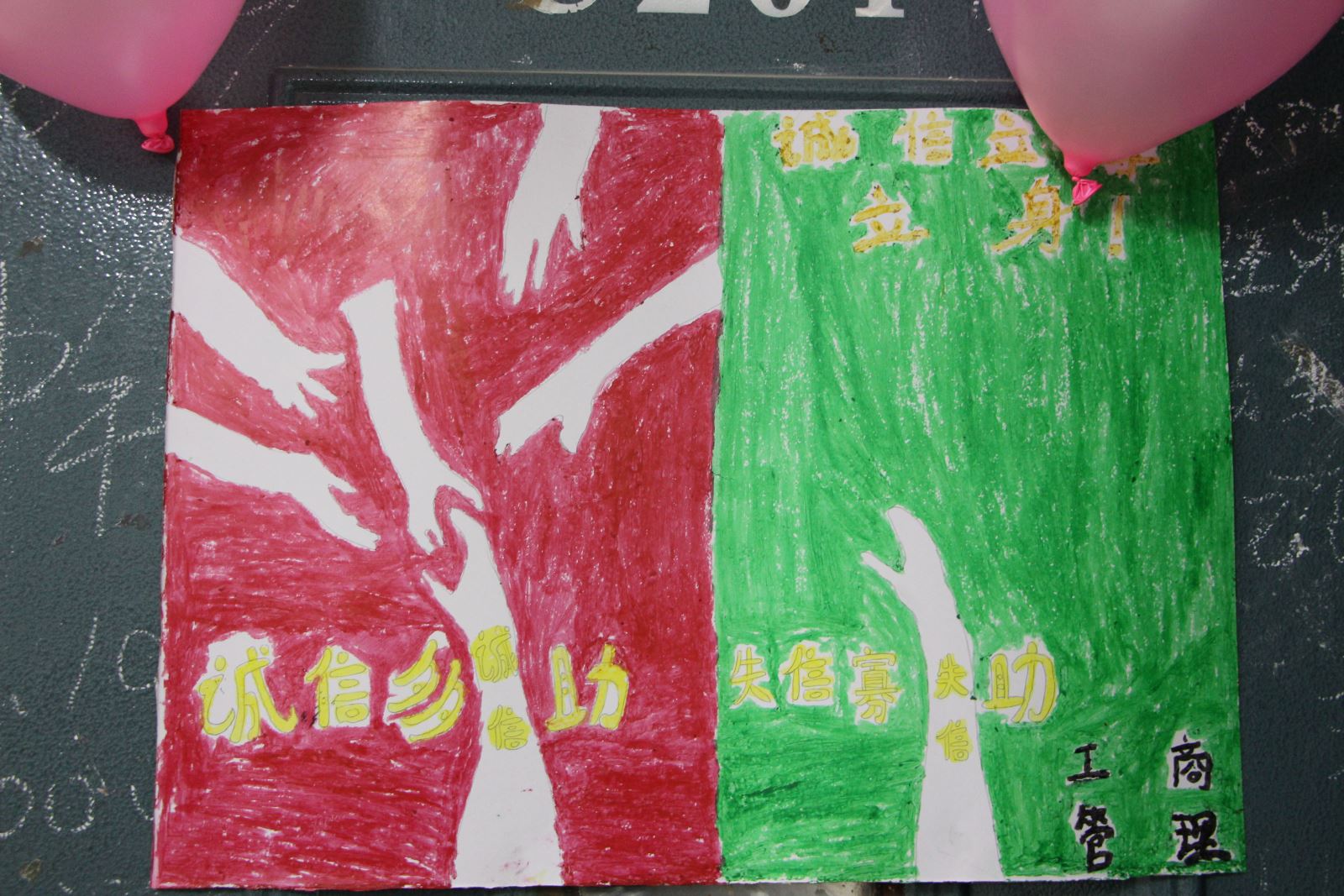 通过这次主题班会活动,同学们更进一步地理解了:何为诚信以及如何去践行诚信,在社会风气日渐下滑的严峻形势之下,践行诚信显得格外重要,而对于当代的大学生来说,以身作则,弘扬“诚信精神”,“诚信立身、诚信立学”是义不容辞的责任。