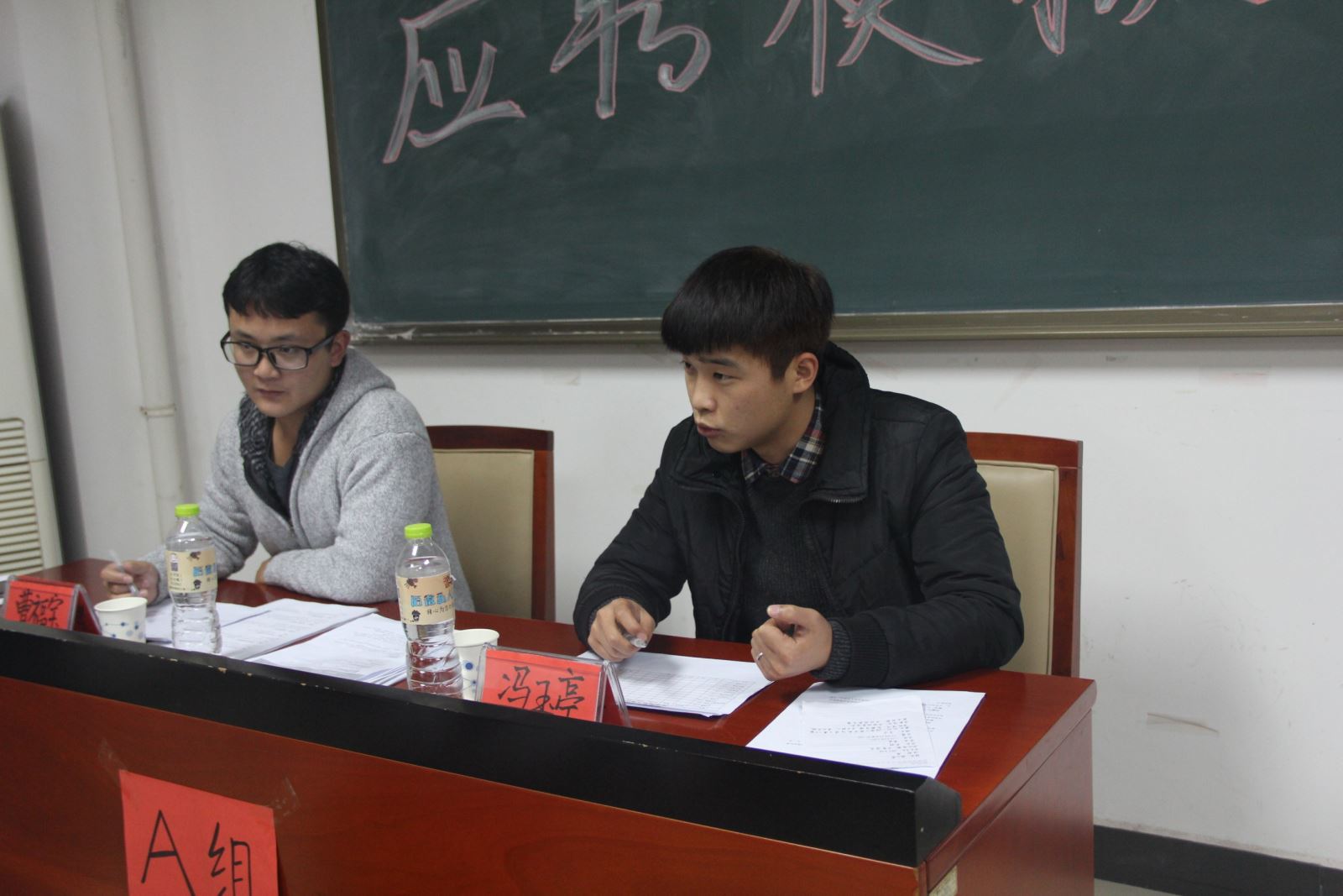 11月23号晚上7点,由管理学院和设计艺术学院联合举办的应聘模拟大赛初赛在G505开赛,企业代表李坚先生及往届应聘模拟大赛前三甲曹福宝、冯玉亭、马雨生担任此次比赛的评委。