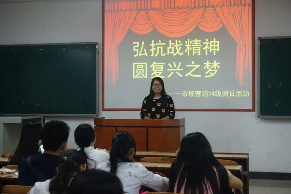 9月29日晚上,管理学院在主教学楼开展了以“弘抗战精神,圆复兴之梦”为主题的团日活动。2014级全体同学参加了团日活动,团日活动由各班团支书主持,其他班委从中协助。