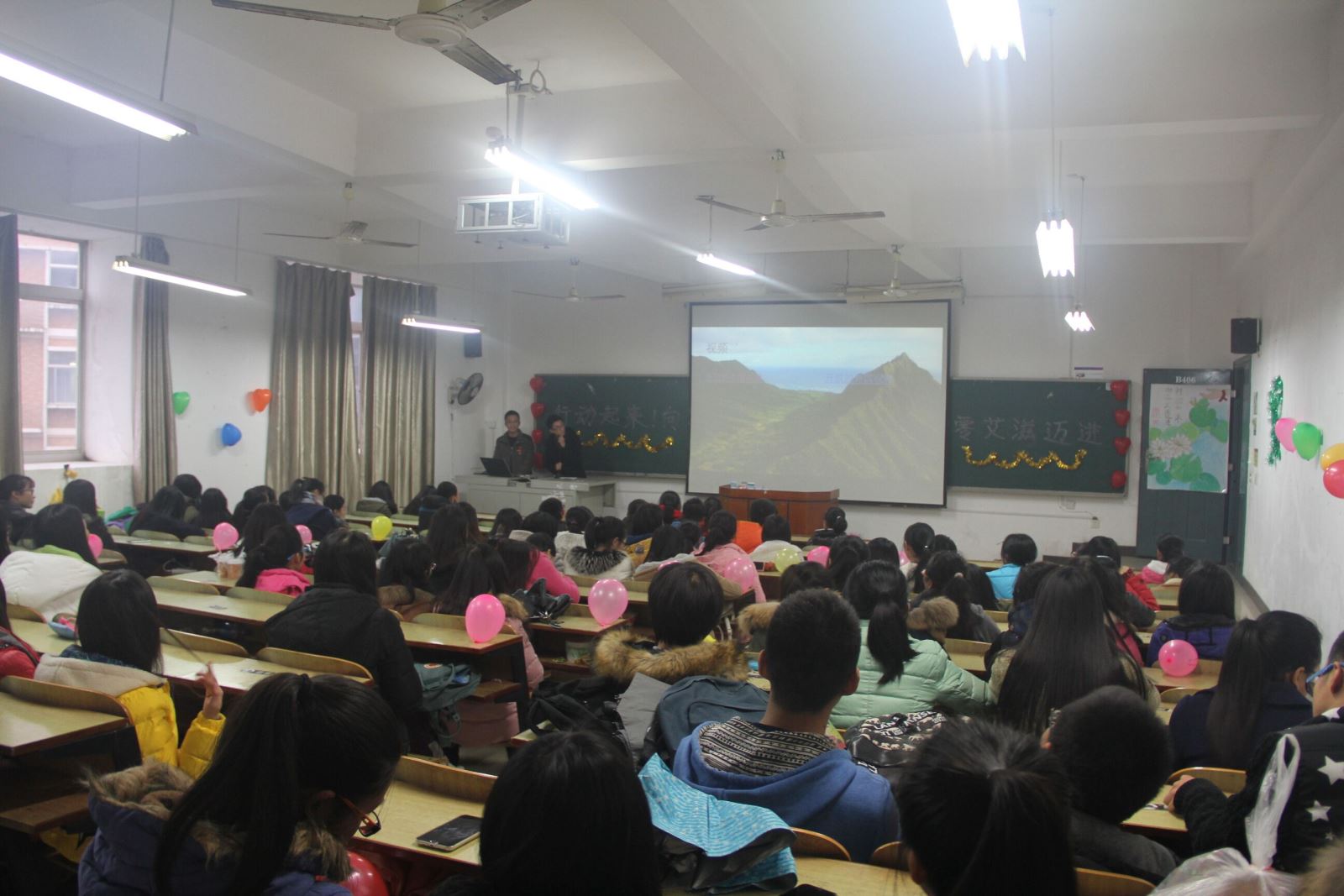 各班级充分发挥了自己的想象力,画海报,装饰教室,开办一场别出心裁的班会。班会上,主持人激情的发言,同学们积极的互动,不仅让所有人了解到了艾滋病的病因,临床表现,及其检查和诊断治疗,还了解到艾滋病患者的痛苦。视频中,一个个面黄肌瘦的艾滋病患者,讲述了他们如何患上艾滋病的经历,死亡临近仍不低头,仍然充满阳光。