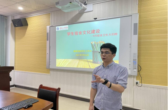 为了更好建设管理学院积极向上的精神风貌,不断提高寝室生活质量,完善学生们的精神追求。9月26日,管理学院太阳集团办在主校区F104举行“学生宿舍文化建设”会议。出席会议的有学办辅导员罗蒙,学生会干部以及管理学院各班班长。