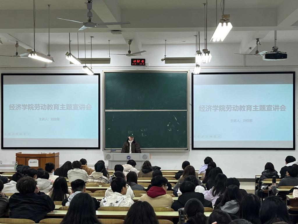 为了普及劳动知识,培养大学生劳动意识,树立正确的劳动价值观,经济学院于2024年11月28日中午13:30在教学楼D栋102教室举办了劳动教育活动,本次活动由资助专干刘佳馨主持。