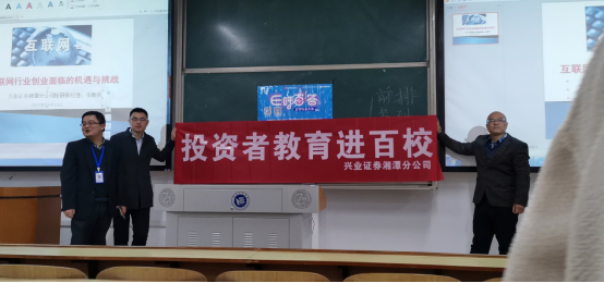 11月26日下午4:50,我院于D301开展“互联网行业创业面临的机遇与挑战”主题讲座。此次讲座由兴业证券湘潭分公司投研部经理张新强主讲,经济学院学办主任戴晶晶主持,我院19级学生参与此次讲座。