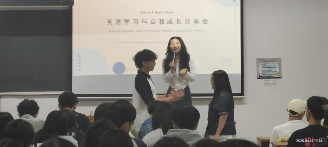本次系列讲座以“分层推进、全员参与”为原则,通过情景对话、角色扮演、配音比赛等互动形式,贯穿于每周的晚自习课堂。浸泡村国际英语的Vicky老师通过破冰游戏和趣味问答调动学生积极性,并发放学习手册与小礼品,为后续活动营造轻松氛围。随后的课程中,Arabella老师以“从网瘾少女到英语达人”的成长故事为主线,结合自身在英语配音、国际交流中的真实经历,生动诠释了英语学习对个人发展的深远影响。