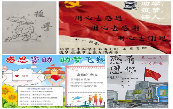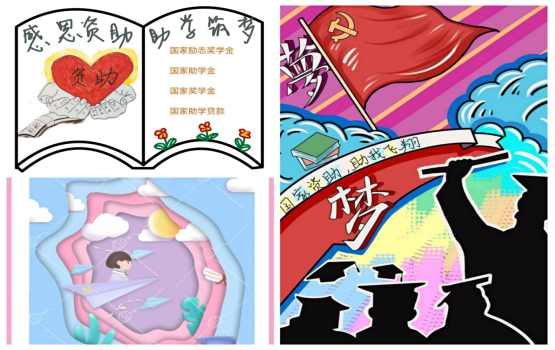 本次活动以“感恩资助,助学筑梦”为主题,号召广大学子通过单张或系列图画形式了解学生资助政策,以此表达感恩之情。同学们选择某一项资助政策,用生动、形象、简洁地图画,展示其政策核心内容,进一步广泛宣传国家资助政策,涵养学生的爱党爱国爱校意识与感恩意识。本次征集活动得到同学们的积极响应,同学们将创新、积极独特的态度灌注于笔尖,以饱满的热情创作出一幅幅优秀作品。