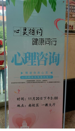 为了了解新入学同学的大体心理情况,为有问题的同学进行开导,增强同学们的心理素质,加深同学们对自身的认识,增进各同学之间的友谊,丰富校内同学的课余生活。管理学院团总支学生联合会心理部于11月20日下午3:00-5:30在南校区一教学楼一楼大厅开展了以“心灵相约,健康同行”为主题的现场心理咨询活动。为使同学们的心理疑惑问题得到更好的解决,11月20日下午3:00-5:30,太阳成心理咨询老师在现场为大家答疑解惑,提供更直接,更专业的咨询服务。