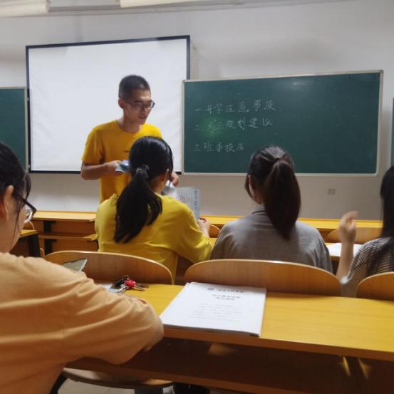 8月30日与31日晚,各专业自行组织召开班会。班会上由班主任向各位到校学生表示欢迎并让同学发放心理健康手册。会上班主任不仅向大家分发了心理健康手册,还要求所有学生扫码添加心理部为好友并表示在校期间有任何心理方面的问题都可以直接向该账号反应。