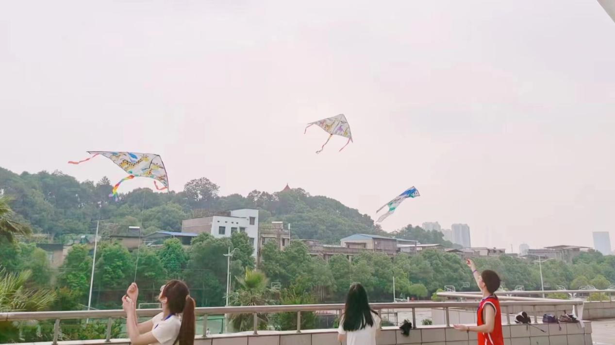 趁着微风吹拂,在罗蒙老师的组织下,同学们将手中创作完成的风筝放飞,风筝乘着风,跟随着同学们奔跑的脚步。有的同学为飞起的风筝欢呼雀跃,有的同学虽没有成功但也不气馁,欢声笑语回荡在人群之中。放风筝活动之后,罗蒙老师组织大家进行素质拓展活动。