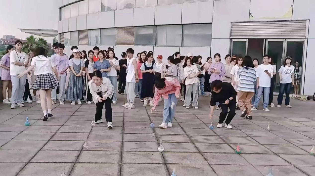 最后是套圈游戏,按照以上游戏的综合排名为顺序,每小组依次参与,每个成员有五次机会。同学们用尽办法,努力套上心仪的作品,欢笑声回荡在活动场地。虽然此次活动时天气欠佳,但在大家的努力和坚持下所有活动圆满完成。