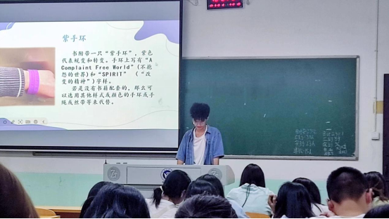 第一阶段,七天不抱怨紫色手环线上打卡活动。该活动分为个人打卡与寝室打卡两种方式,活动期间同学们踊跃参与,积极打卡记录,并认真整理相关材料,对参与活动的心路历程进行总结。根据同学们提交的活动材料,共评选出个人奖项14名与寝室奖项10名。