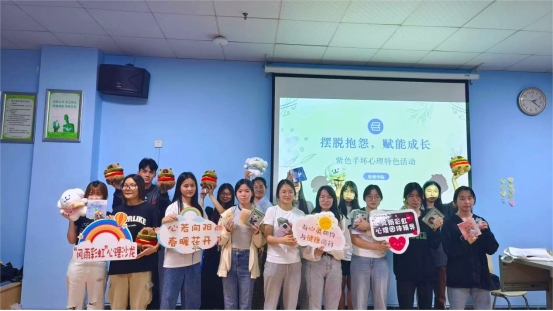为传播心理健康知识,缓解同学们学习生活压力,促进同学之间的相互交流,帮助同学们减少抱怨。五月下旬以来,我院开展“摆脱抱怨,赋能成长”紫色手环心理特色活动,活动分为七天不抱怨紫色手环线上打卡活动与线下团体辅导活动两个阶段。