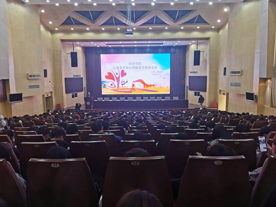 为了进一步提高我院学生心理健康教育水平,落实我校五级心理危机干预机制,充分发挥心理委员和寝室心理联络员的桥梁作用,经济学院于11月17日中午14:00在主校区一报告厅举行心理委员和寝室心理联络员培训讲座。本次活动由经济学院学办主任戴晶晶主讲,院学生会心理部全体成员、全体心理委员和寝室心理联络员参加讲座。