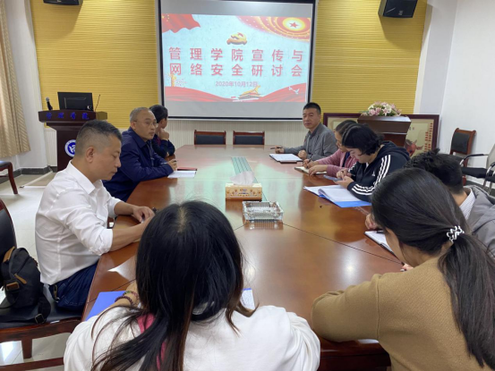 2020年10月12日上午,管理学院党委召集党委委员和学办辅导员开展“宣传与网络安全”研讨会。