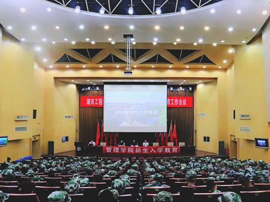 为了让大一新生认识和了解学校,了解大学生活和学习的特点,帮助学生认识自我和树立信心,管理学院于2019年9月17日10:00在图书馆一报告厅举行2019级新生入学教育。本次会议由管理学院副院长潘立军主持,出席人员包括全院领导、各教研室主任、新生班主任、新生辅导员以及2019级新生们。