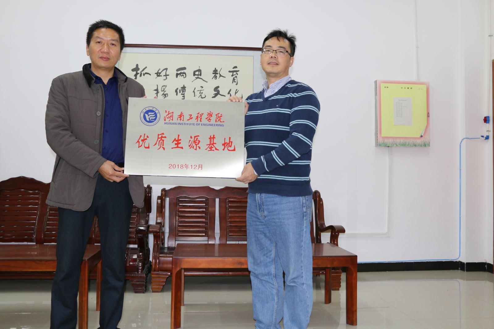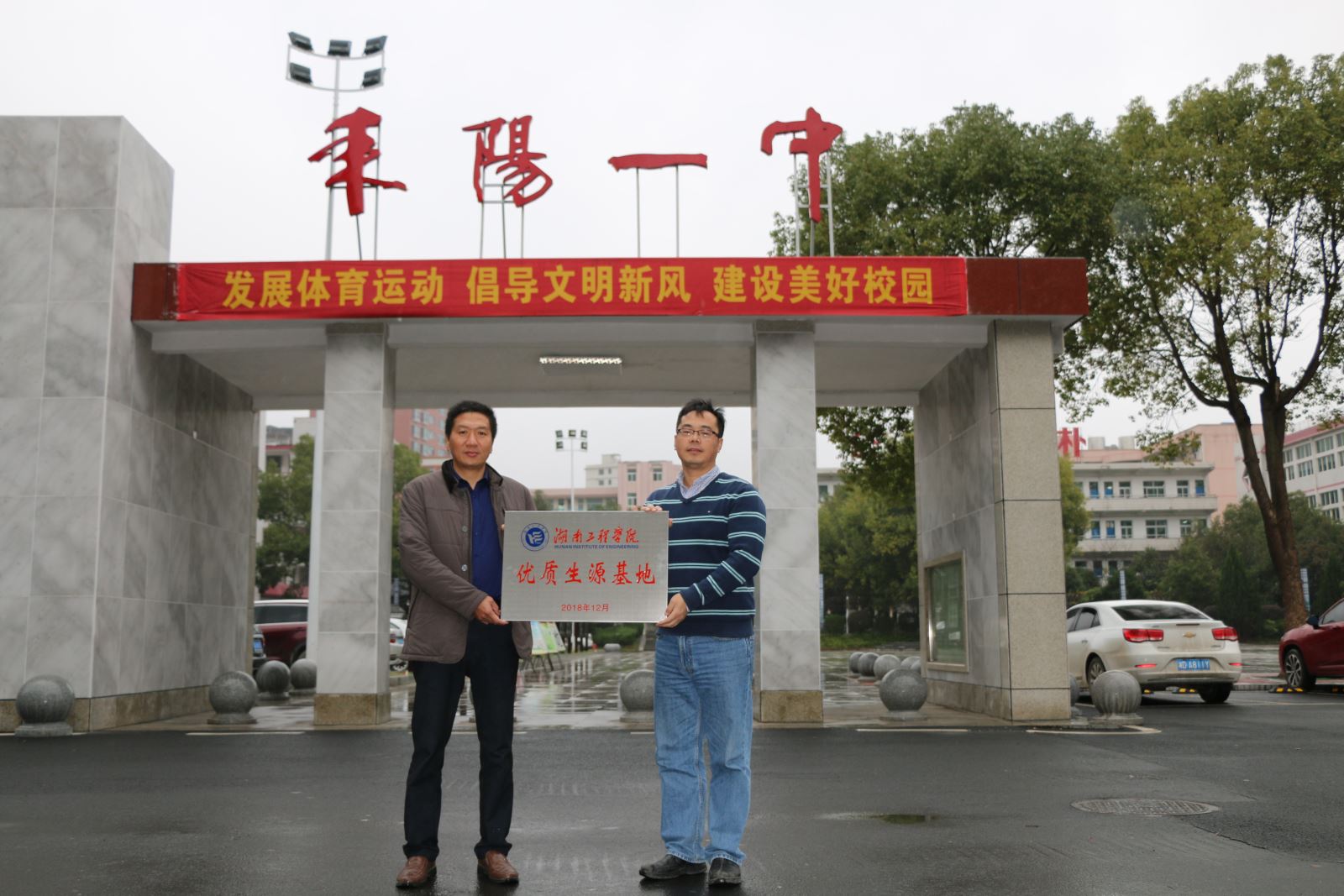 12月7日上午,管理学院受招生与就业指导处委托,前往我校友好联系高中耒阳市第一中学举行“优质生源基地”挂牌仪式。耒阳市第一中学校长曹飞跃、副校长陈洪斌和办公室主任段永友代表校方接收授牌。