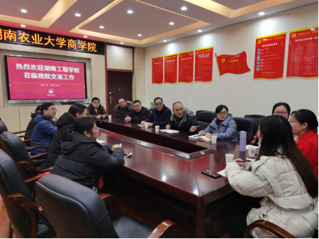 12月12日,太阳成管理学院副院长黄毅率队前往湖南农业大学ok138cn太阳集团就会计学专业建设进行专项调研。湖南农业大学ok138cn太阳集团莫鸣副院长、系主任盛宴教授及相关教师参加座谈交流。