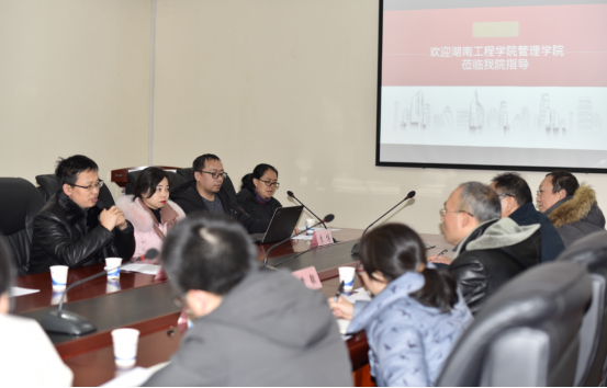 座谈会上,屈喜龙介绍了信息技术与管理学院的办学历史和办学基本情况,信息技术与管理学院电子商务系主任李博就湖南财政经济学院电子商务专业的发展历程、现状进行了介绍。双方从人才培养方案制定、实验室建设等方面进行了经验交流。随后,就各自在电子商务专业建设中面临的现实问题和发展思路进行了深入探讨。
