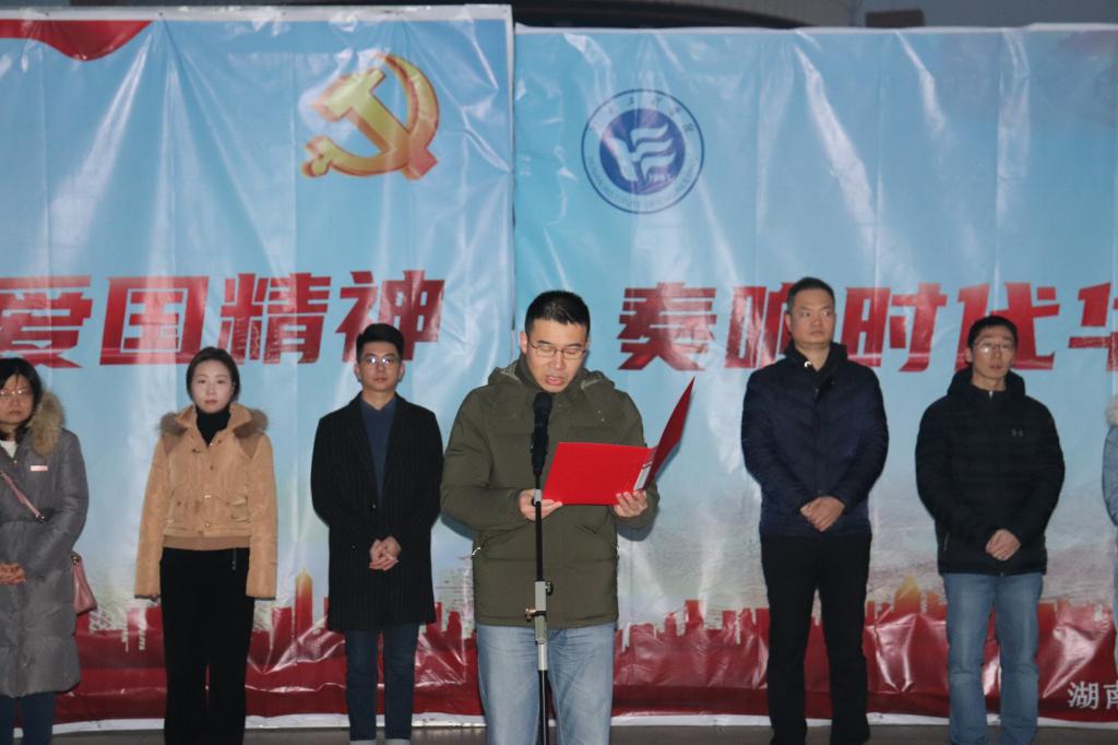 七点整,升旗仪式在铿锵有力的国歌中正式开始。学院党委书记钱祖煜发表国旗下的讲话,他指出,要把爱国主义教育作为永恒主题,广泛开展理想信念教育,让爱国主义成为每一个中国人的坚定信念和精神依靠。要加强政治领导、思想引导,坚持用社会主义核心价值观引导学生勤学、修德、明辨、笃实。同学们应该将爱党爱国内化于心,外化于行,切实提高学习能力。