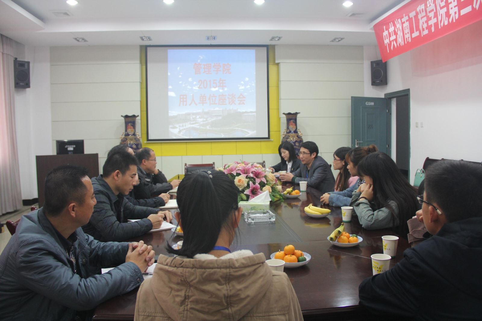11月21日下午,管院学院在G座509成功召开2015年用人单位座谈会。院长吴振顺、院党总支书记卢明纯、院党总支副书记钱祖煜出席了会议,会议由学办主任罗荃主持,学院盛情邀请招聘我院毕业生的用人单位代表参加了会议。会议旨在建立良好的学院与用人单位的双向交流,听取用人单位对我院毕业生的宝贵意见和建议。