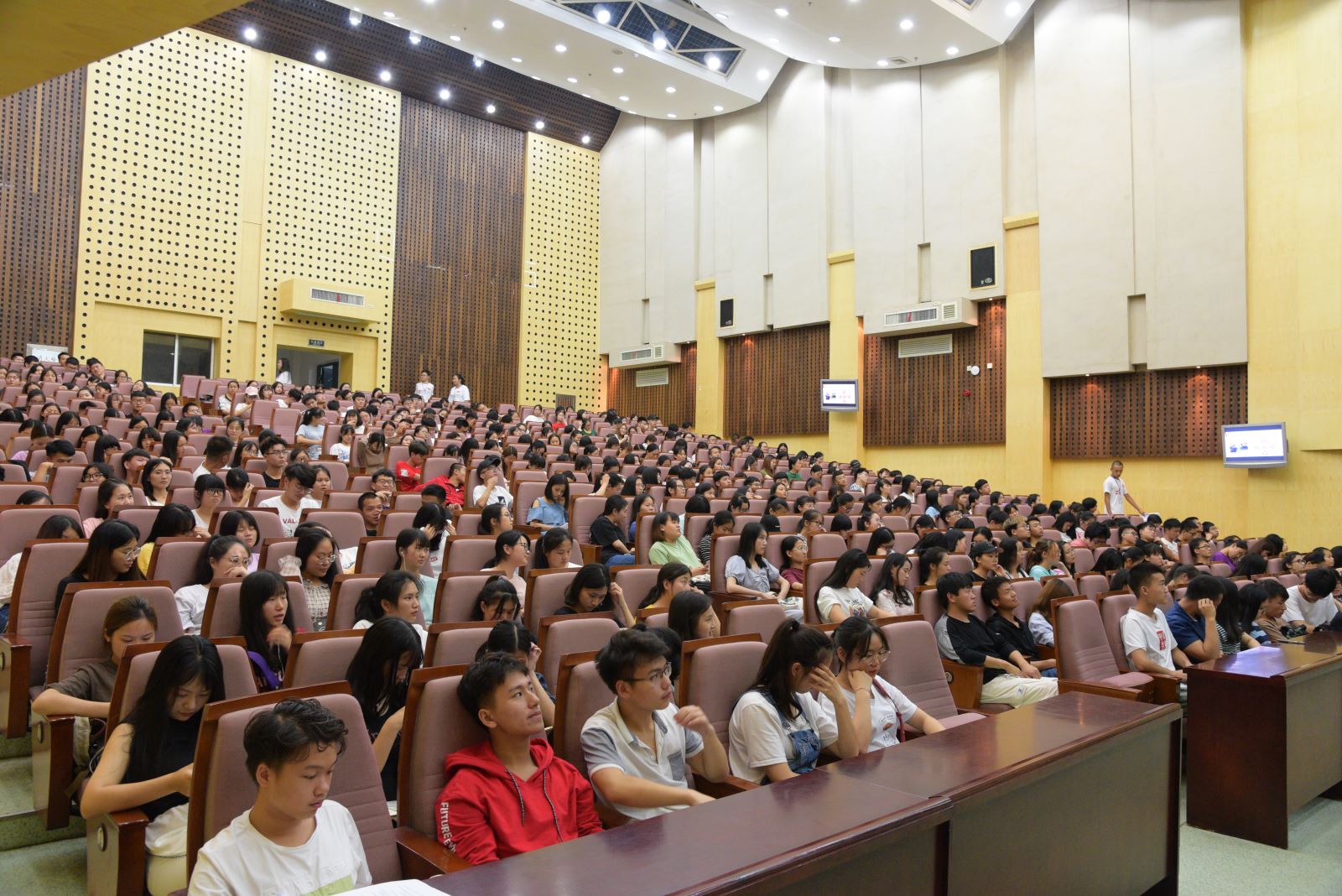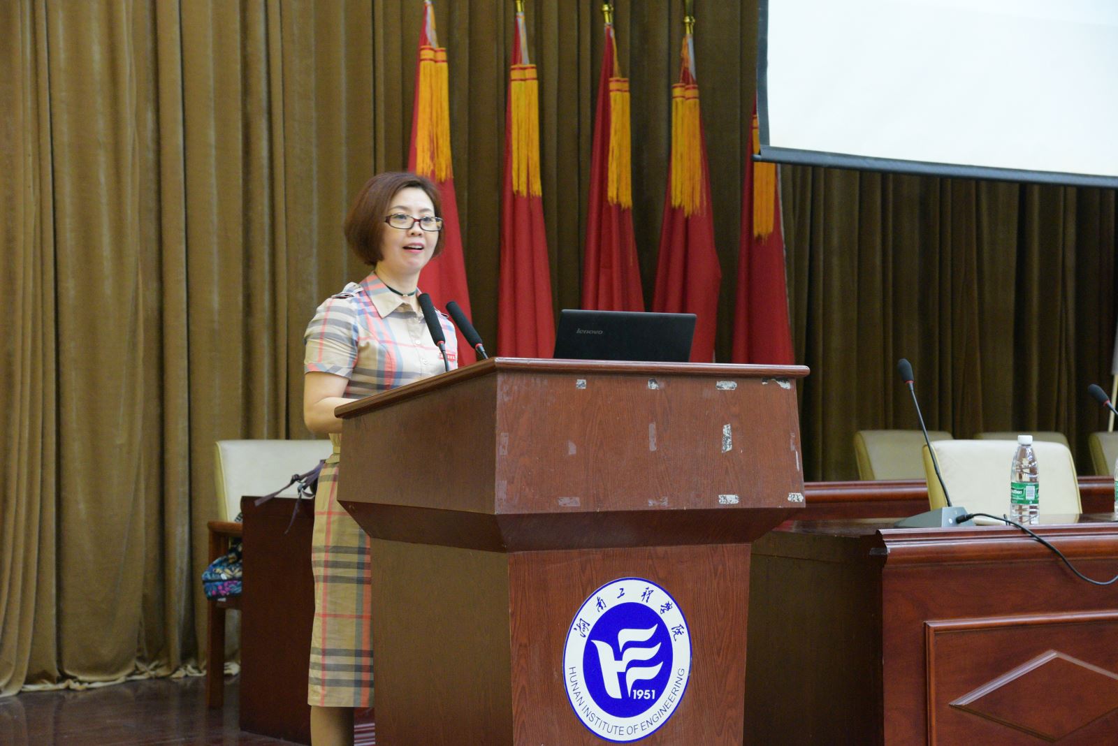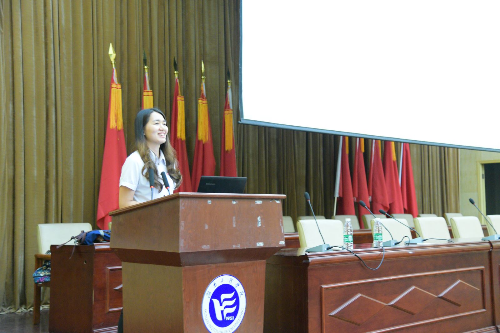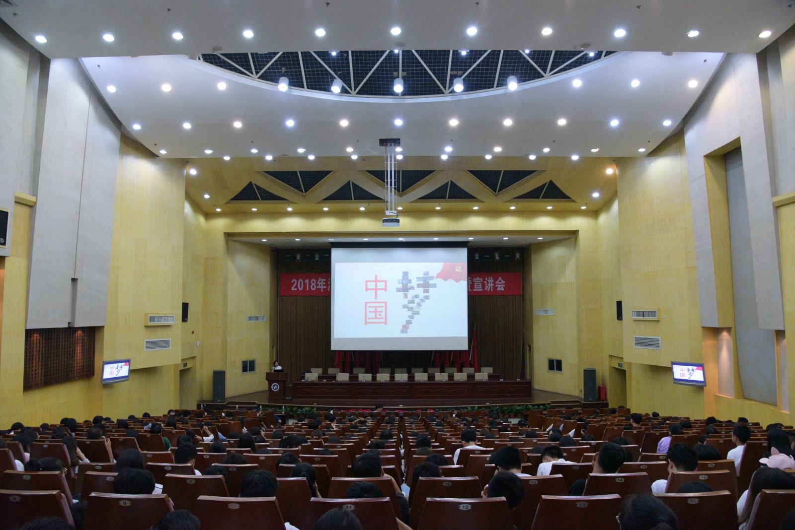 第一位宣讲老师是来自外国语学院的党总支副书记黄琴老师。黄老师从“共筑中国梦,共担青年责”这一主题出发,讲述了教育对中国梦实现的重要价值、个人对教育的重要价值以及个人对中国梦实现的重要价值,并列举湖工学子的优秀事迹进行讲述。随后,机械工程学院辅导员曾依依老师以“共赴新征程,共担新使命”为题,从开启新时代、新征程、新使命三个方面出发,列举改革开放以来新时代中国的重大举措,就中国的新发展提出了见解。两位老师通过图文并茂的精美PPT,深入浅出的讲解,她们亲切的口吻深深地吸引着同学们,使在座的每一位同学没有半点分神。
