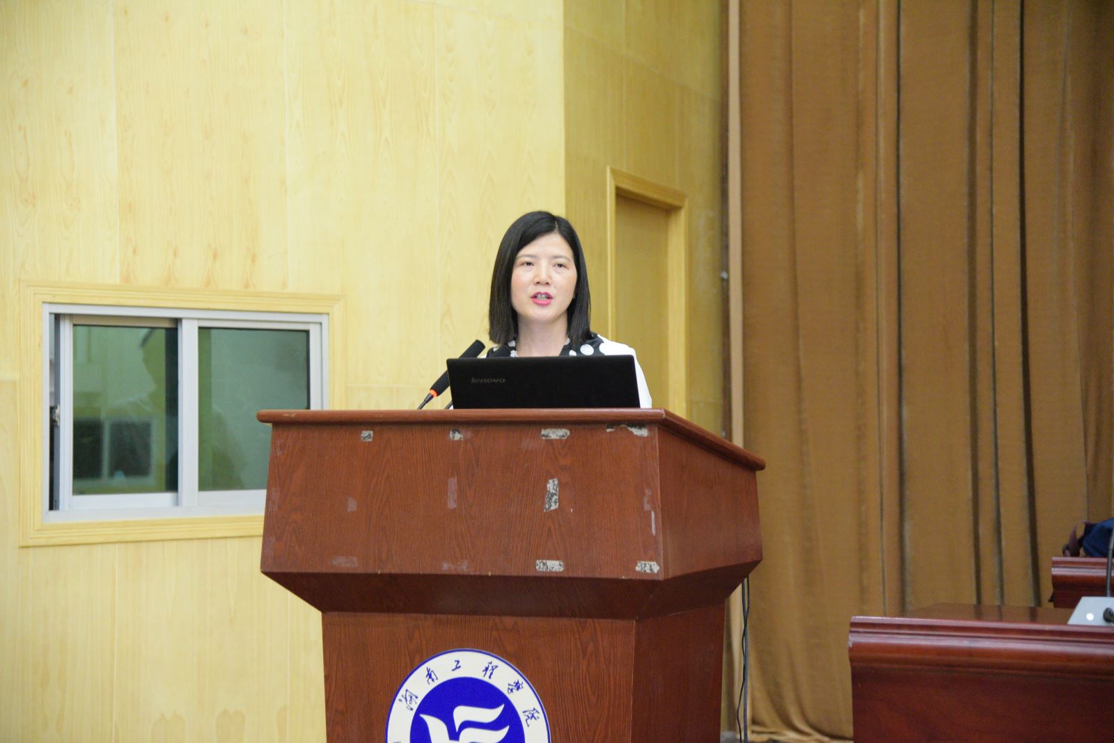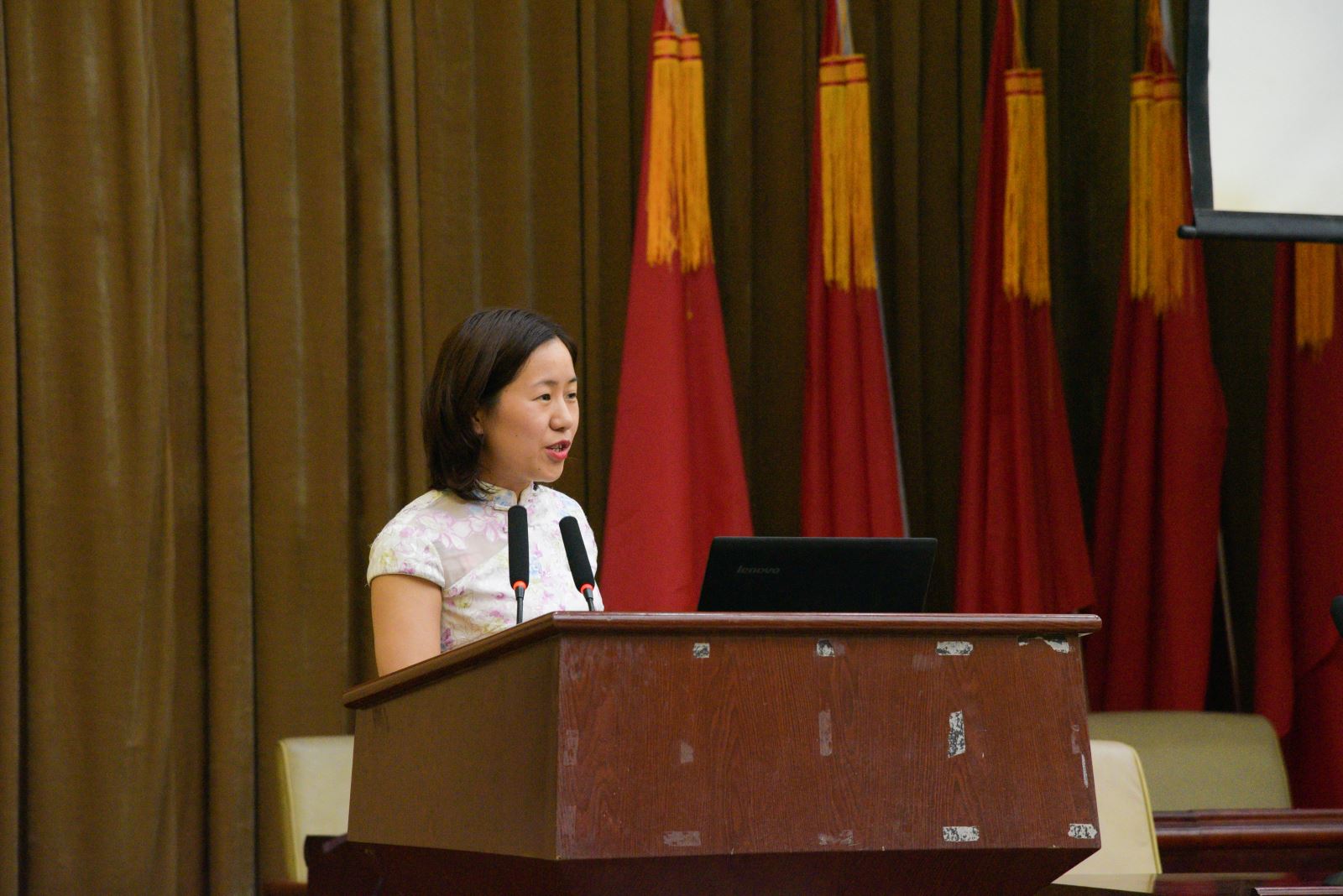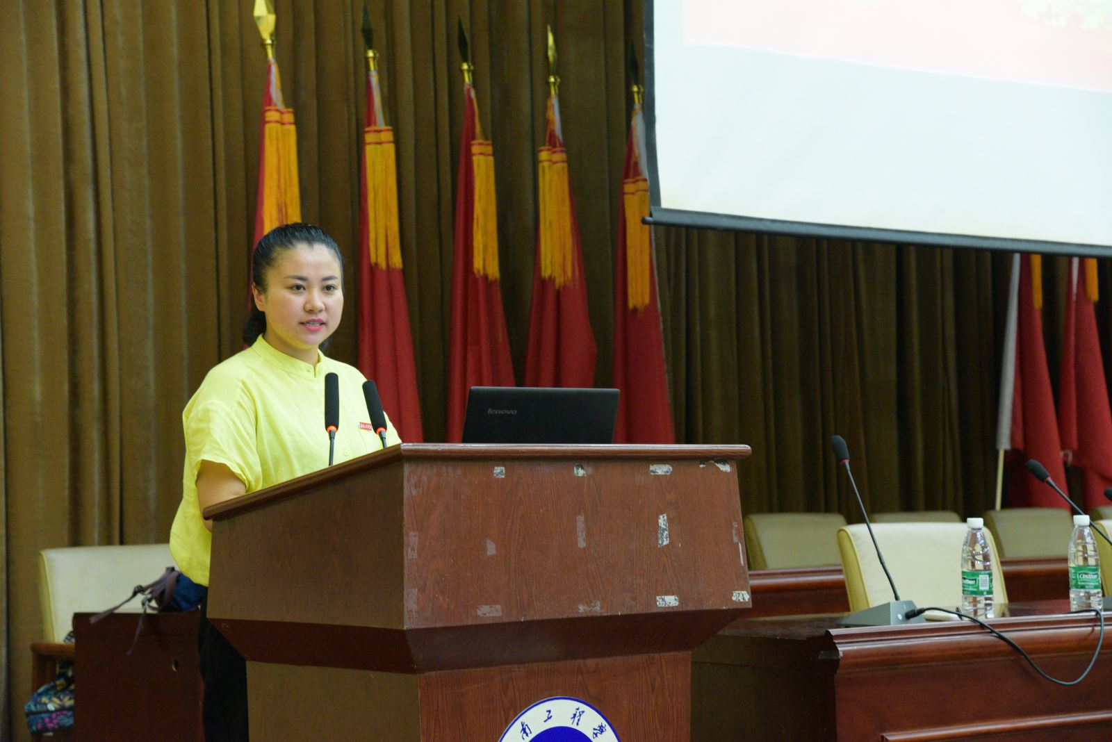 来自纺织服装学院辅导员黄镜燕老师宣讲的课题是“共同的文化基因,共同的自信之路”,从甲骨文文字文化说起,再深入中国人的生活习惯,传统文化等方面,无一不体现出我国的文化底气与文化自信之所在。最后她还呼吁广大学子,不忘本来,吸收外来,面向未来,肩负起中国青年的文化使命。