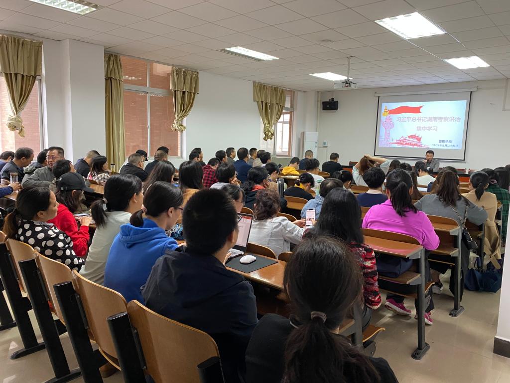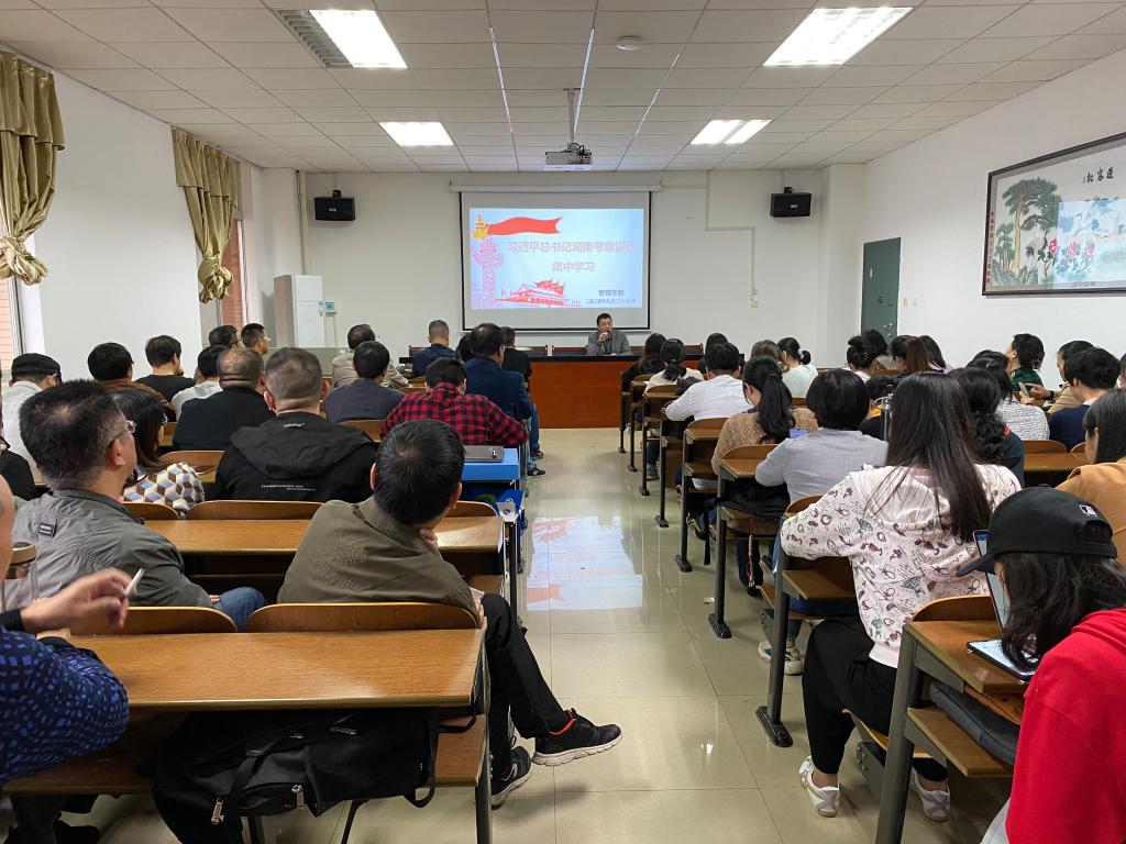2020年9月29日下午,管理学院钱祖煜书记在G505组织全体教职员工专题学习《习近平总书记湖南考察讲话》精神。